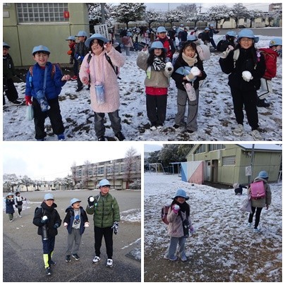 最強寒波襲来により寒い日が続いていますが,子どもたちは “雪” を見て大はしゃぎ!どの子も雪玉を持って(抱えて?)登校してきます。