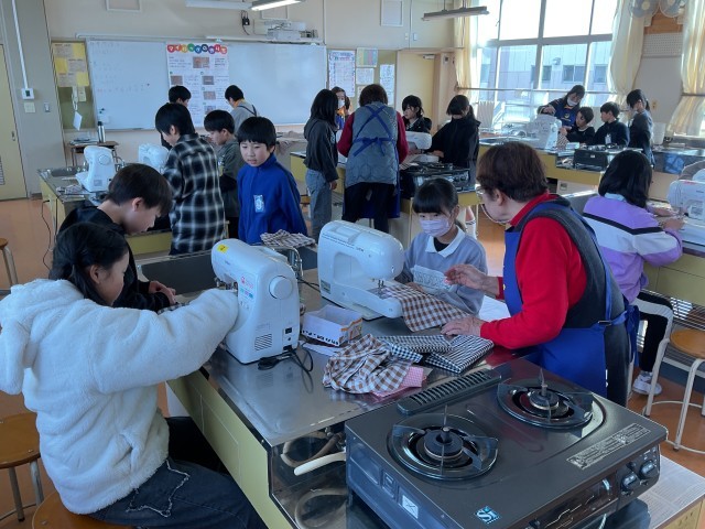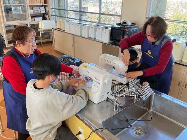 小牧市女性の会の皆さんをお招きし、ペットボトルから作られた布でエコバッグ作りに挑戦しました。子どもたちは初めてのミシンにドキドキしながらも、教えていただきながら上手に縫うことができました。完成したエコバッグはどれも素敵で、世界に一つだけの作品になりました。