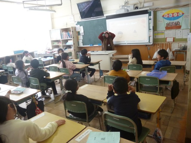 みんなの大好きな外国語活動がありました。まずは、色を英語でいう練習です。「Blueは青のことだね」「Redは赤!」すぐに覚えて、教室の中からその色を見つけることができました。そのあと、果物を英語で言う練習もして、ダイアナ先生に「I like strawberries!」と知っている英単語を使って一生懸命に話しかける姿がありました。See you soon!ダイアナ先生!