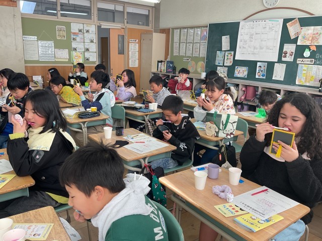 最後は、正しいブラッシング方法を教わりながら、みんなで丁寧に歯をみがきました。ぜひ、今日はおうちでも教わった磨き方を実践してほしいと思います。