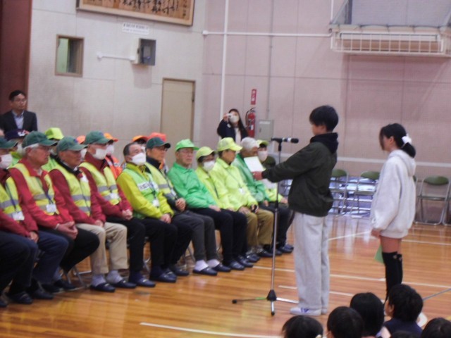 2/27に「パトボラさん感謝の会」を行いました。はじめに、夜のパトロール活動に参加し、地域の安全に貢献した児童の表彰を行いました。その後、日頃から登下校時に子どもたちを見守ってくださっているパトロールボランティアのみなさんへ、感謝の気持ちを伝えました。雨の日や暑い日、寒い日にも変わらず活動してくださるおかげで、子どもたちは安心して学校に通うことができています。パトロールボランティアのみなさん、いつも本当にありがとうございます。