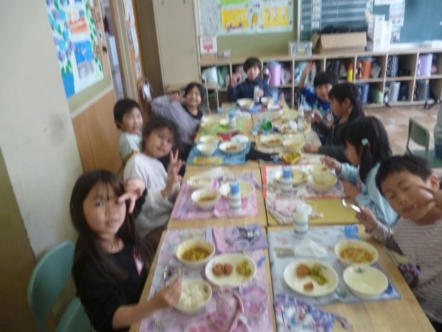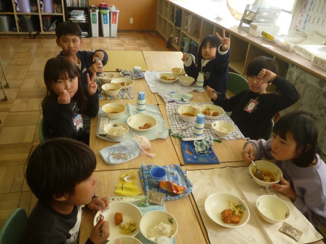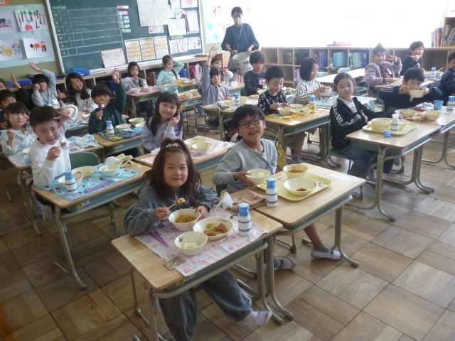 あっという間に1年が過ぎ、1年生はもうすぐお兄さん、お姉さんになります。今日は1年生として食べる最後の給食でした。記念すべきメニューはみんなが大好きな「カレーライス」です。配膳室から漂ういい匂いに、4時間目から子どもたちはワクワクが止まりません。「早く食べたいな~!」「お腹空いた~!」1年生になって最初の給食も「カレーライス」でした。みんなで食べるカレーはいつでもおいしいですね。配膳の準備や片付けも、この1年間で見違えるほど上手になりました。空っぽの食缶が子どもたちの成長を証明しています。たくさん食べて心も体も大きく成長しました。2年生でもおいしい給食をモリモリ食べて、毎日元気に過ごしてほしいと思っています。