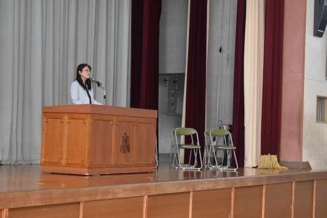 その後、始業式が行われ、校長先生から「あいさつ」「あたりまえ」「ありがとう」の“3つのあ”を大切にしていこうというお話がありました。