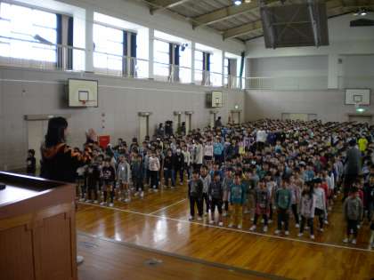 認証式の後は、全員で校歌を歌いました。校歌を覚えたばかりの1年生も、大きな声で歌えました。
