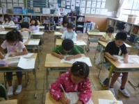 視力検査がありました。検査の前に目のけがについて話を聞きました。運動場でボールなどが当たってもこすらず、きれいな水で洗い流したり、保健室で見てもらったりしましょう。