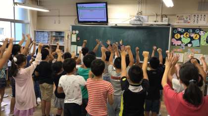 今日はあいにくの雨のため、全体練習ができず、各教室で応援練習を行いました。応援団が前に出て、大きな声で練習をリードしていました。
