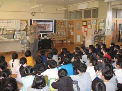 昔の学校、勉強、戦争の話など、子供たちにも分かりやすい言葉で、写真や図を使って、丁寧に説明して頂きました。