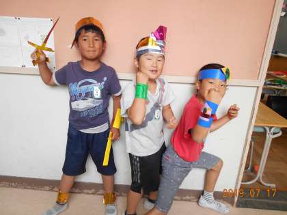出来上がったら早速、かぶってへんしん完了!たのしかったね。
