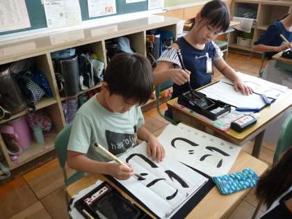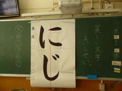 どの子も「にじ」を、今までの練習の成果を生かして、一生懸命に書くことができました。