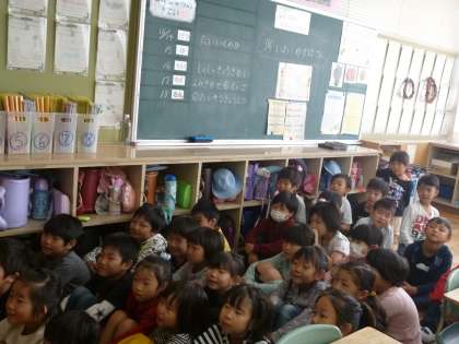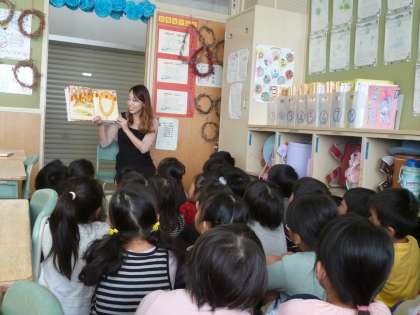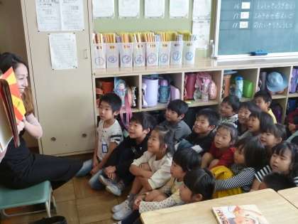 17日の朝、にじいろ絵本のお母さんによる、絵本の読み聞かせがありました。
