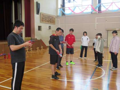5月2日(木)の業後に、教職員に向けての体力テスト講習会を実施しました。実際に体を動かしながら、児童への指示や指導のポイントについて、体育主任の先生から講習を受けました。