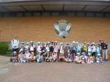 社会見学の学級集合写真です。暑い中の班別行動後なので、少し疲れた様子もうかがえま...