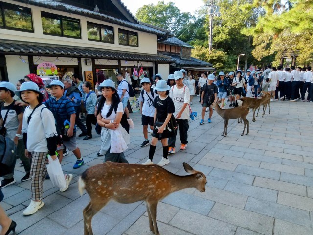 いよいよ大仏殿に入ります。奈良の大仏の大きさに息をのむ子どもたち。大仏が現代まで残ってきた,そして先人たちが遺してきた,その歴史の重さを感じ取ることはできたかな?