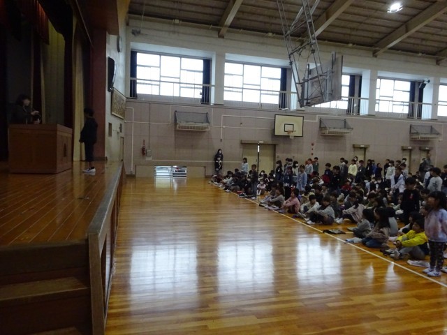 今朝,体育館で図画工作・書写競技会の表彰式が行われました。代表児童が舞台上で賞状を受け取りましたが,他の入選者は教室で担任の先生から賞状を受け取りました。 年に一度の競技会で,自分の作品が選ばれた子...