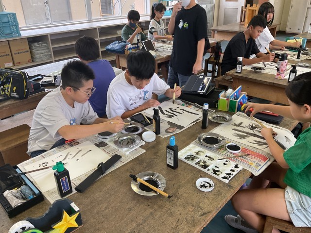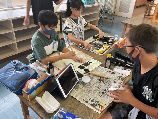 6年生は、図工競技会に向けて水墨画の練習に取り組んでいます。