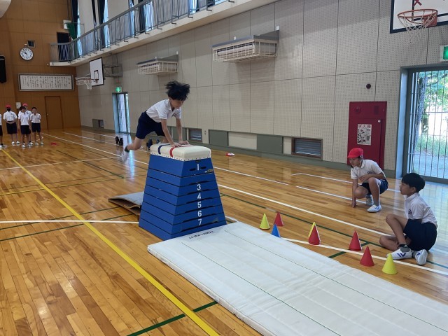 子どもたちは、助走から踏切、着手、空中での体の使い方、そして着地までの一連の動きを意識しながら取り組みました。特に、助走の速さ踏切の力強さを工夫することで、高く・遠くへとび越せるように試行錯誤していました。そして自分の課題を見つけたり友達とアドバイスをし合ったりする姿も見られました。