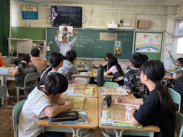 授業では、合戦の様子が描かれた図屏風を手がかりに読み取ったり、地図帳を使って場所を確認したりしながら、戦国の世を実感をもってとらえることができました。