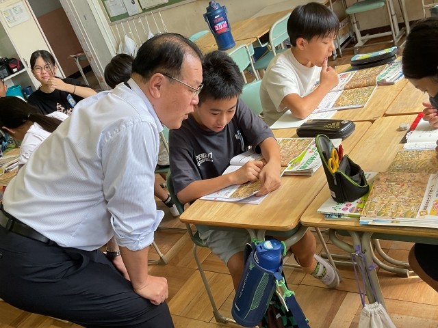 6年生は、社会科「戦国の世から天下統一へ」の学習を校長先生に教えていただきました。今回は単元の導入部分として、戦国時代の様子や武将たちの活躍について学びました。校長先生のお話に盛り込まれたたくさんの知識に、子どもたちはぐんぐん引き込まれていきました。