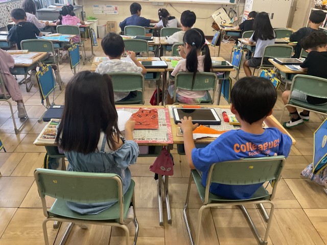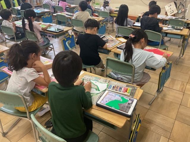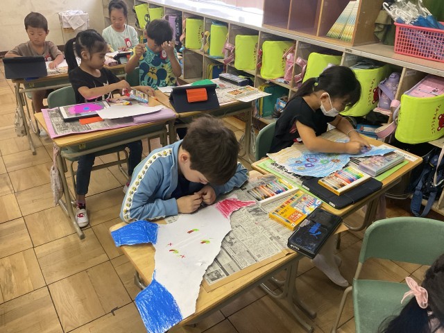 1年生は、図工の時間に競技会の作品に取り組んでいます。