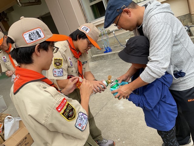 「たき火でアウトドアクッキング」講座では、ボーイスカウト小牧第2団の方々を講師にお迎えしています。