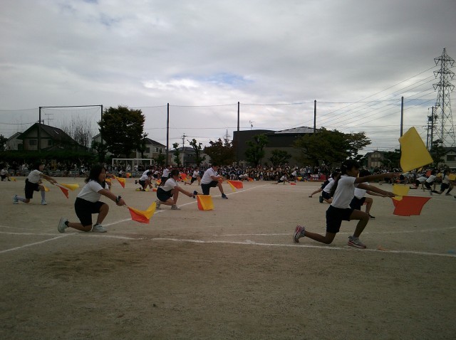 よく揃った両手のフラッグが風を切る、キレキレのダンス。