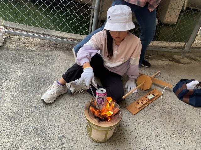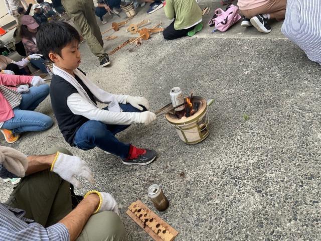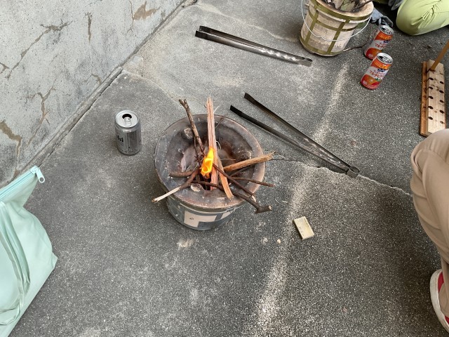 みんなの頑張りもあり、無事に火が着きました。