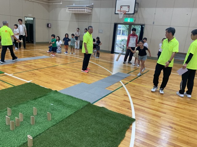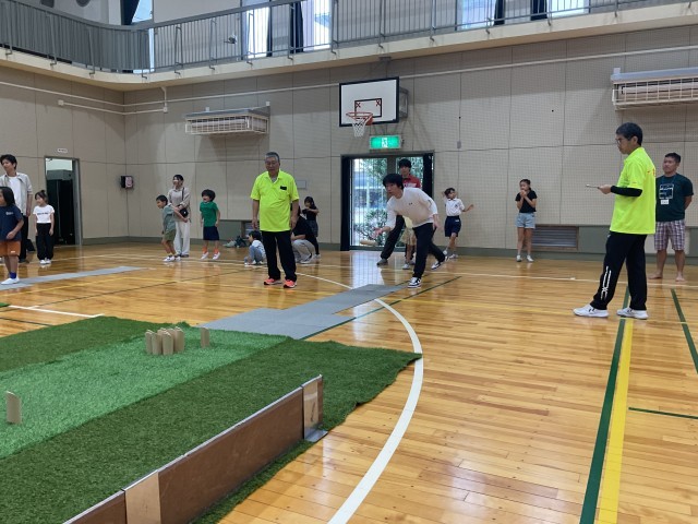 地域ふれあい活動として、「モルック&ラダーゲッタースピード」講座を体育館で行いました。
