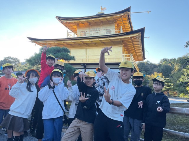 金色に輝く建物の美しさに、子どもたちは思わず感嘆の声を上げていました。