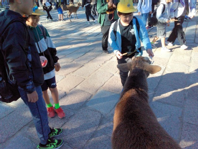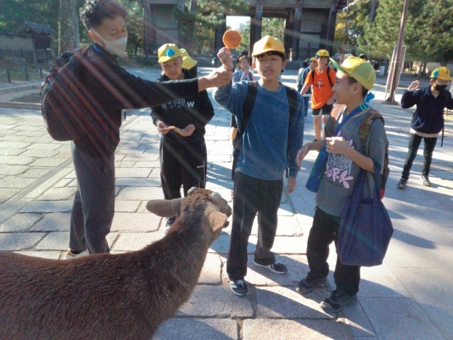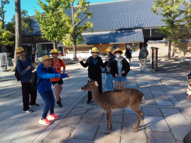 学級写真撮影後、奈良公園の班別行動がスタート。
