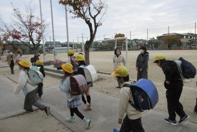 めっきり冷え込むようになった朝の校庭で、さわやかなあいさつが交わされました。