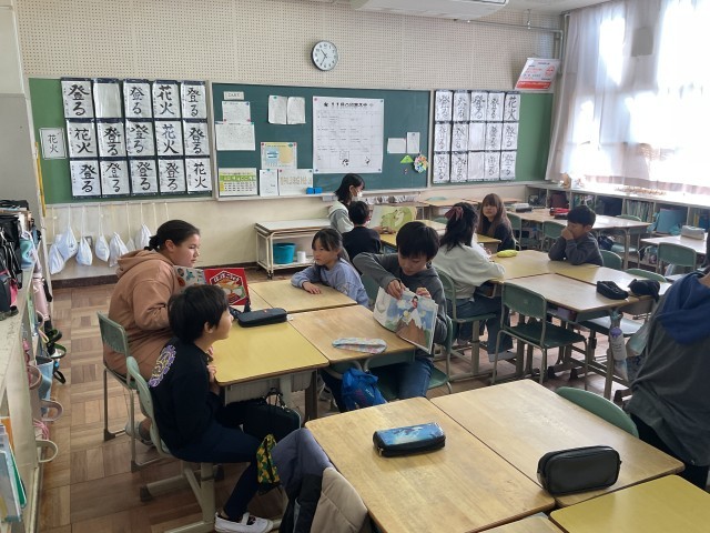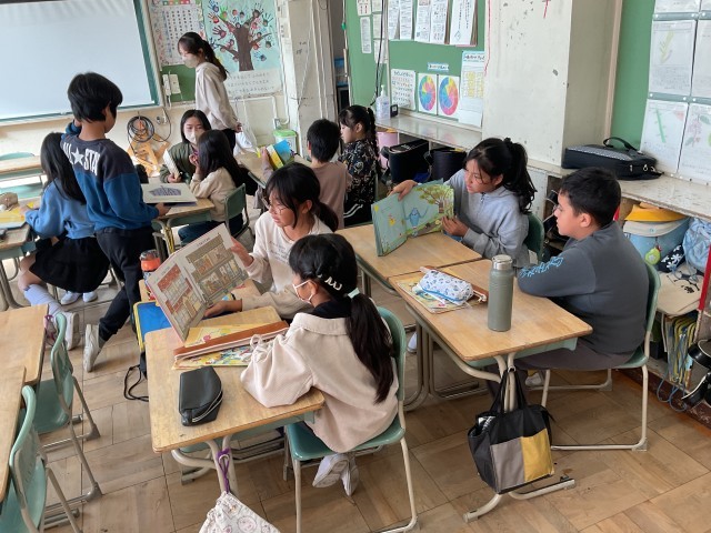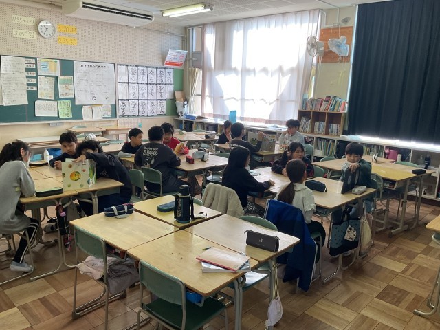 今日の20分放課には、5年生と3年生がペア読書を行いました。