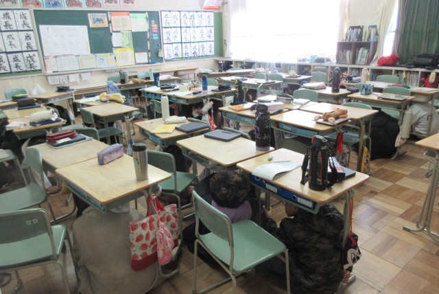 12月16日(火)朝のモチノキタイムに、今年度第2回目のシェイクアウト訓練を行いました。