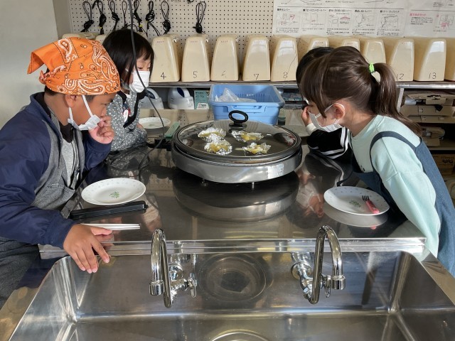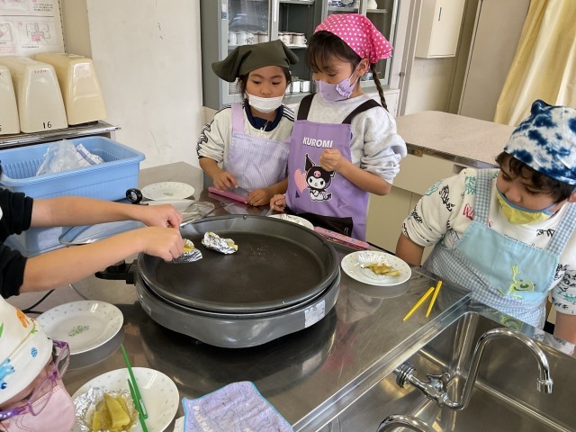 おいもパーティでは、11月に収穫したさつまいもに味をつけておいしく食べました。「おいしい!」{もっと食べたい」という声がたくさん聞かれました。