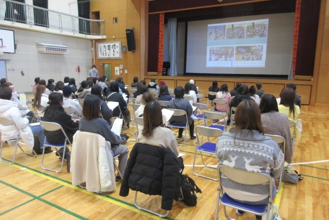 新入児童の保護者に入学に向けた案内をするとともに、新入児と1年生の交流を通して、小学校生活に夢と希望を膨らませるのがねらいです。