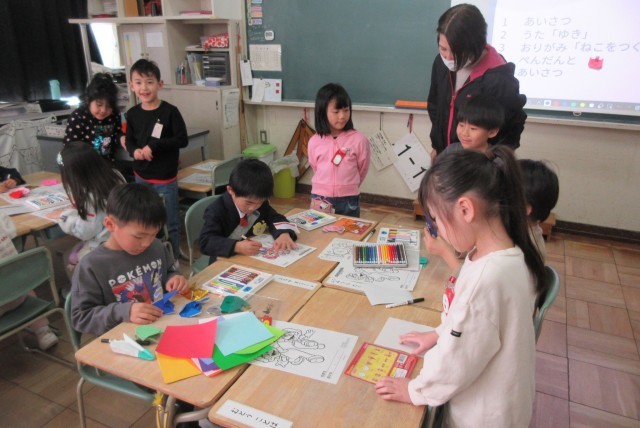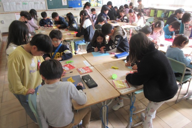 進級年生で仲良く、塗り絵や折り紙に興じました。