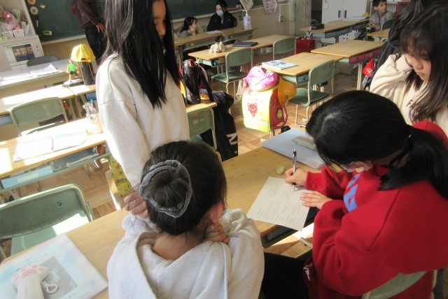 新1年生に向けたメッセージカードもみんなで相談しながら作りました。