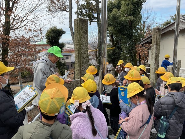 地域の方を講師に、岩崎山と小牧山の関係や大きな岩の使われ方など、岩崎山に関わる歴史について教えていただきました。