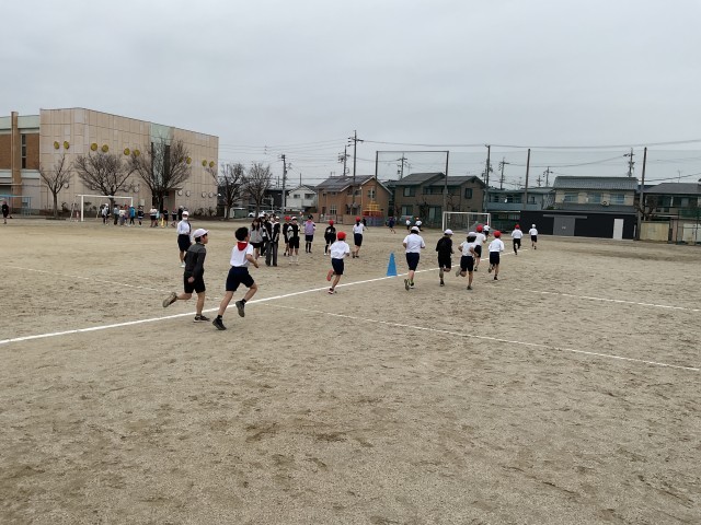 はじめに3分間走に取り組みました。自分のペースを意識しながら、最後まであきらめずに走り切る姿が多く見られました。友達の頑張りに刺激を受けながら、それぞれが頑張って取り組むことができました。