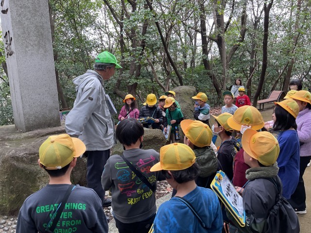 よく見上げている山がとても昔からあり、歴史的に貴重な物もたくさんあると知って児童は興味津々。