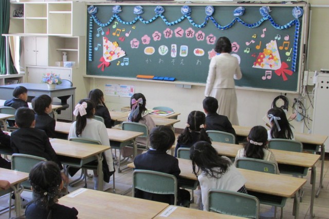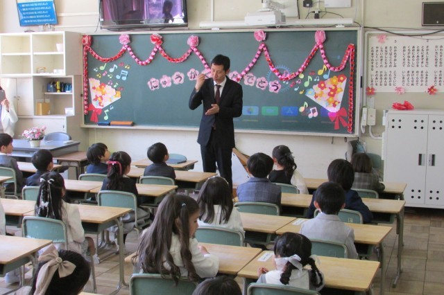 教室に入って自分の席に座りました。初めての学級活動です。明日から初めてのことがたくさんあります。わくわくしますね。