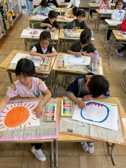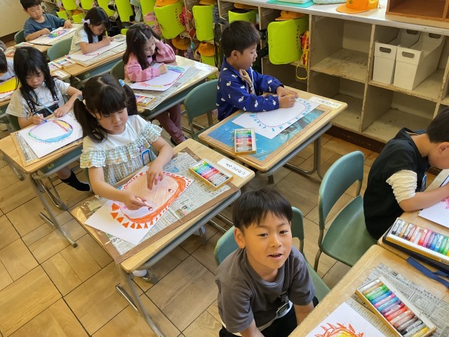 クレパスの使い方に気を付けながら楽しんで描きました。