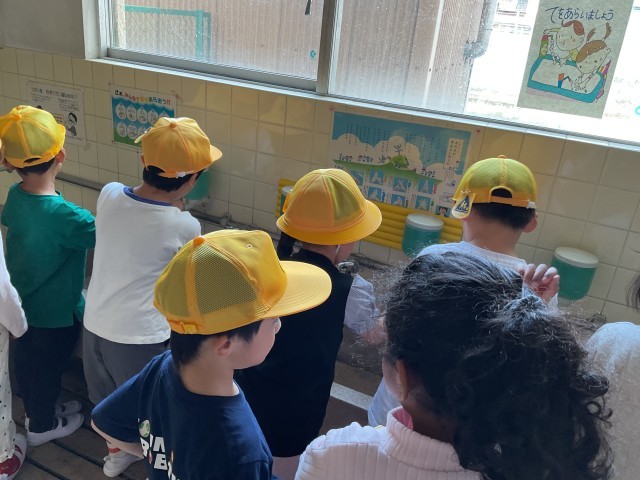 そのあとは、きちんと並んでしっかり手洗いもしています。