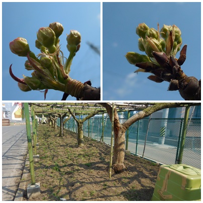 梨園の梨もたくさんの花芽が1つ1つのつぼみに分かれています。