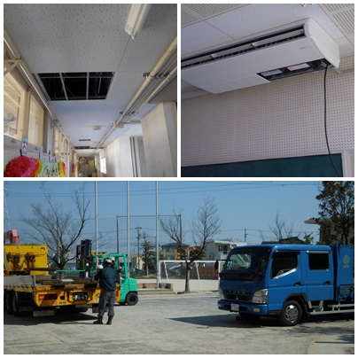 明日からは入学式準備などで子どもが登校し始める関係で室内の工事が平日はできなくなるので、室内でも急ピッチで作業が進められています。