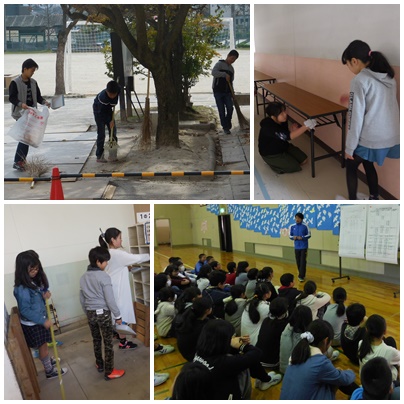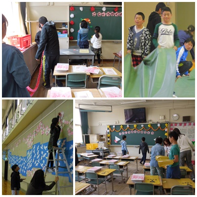 新6年生の子どもたちと教職員で入学式準備を行いました。