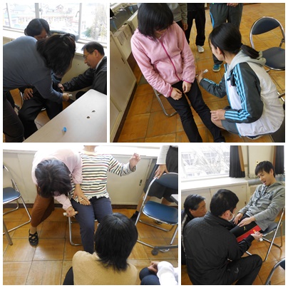 研修では、食物アレルギーとアナフィラキシー、エピペンの使い方などについてみんなで確認をし、その後練習器を使ってエピペンをうつ実習に取り組みました。