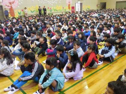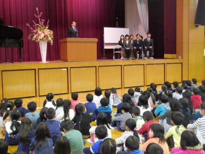 昨日入学してきたばかりの1年生もしっかり話を聞いています。