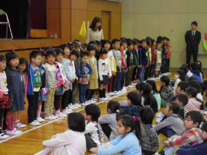 始業式の後には1年生と2〜6年生との対面式。