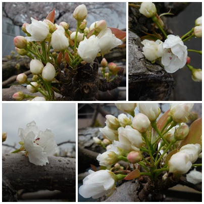 梨の花がやっと開花し始めました。