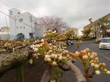 また、この時期は白い梨の花越しにピンクの桜の花を見られる特別な季節でもあります。
